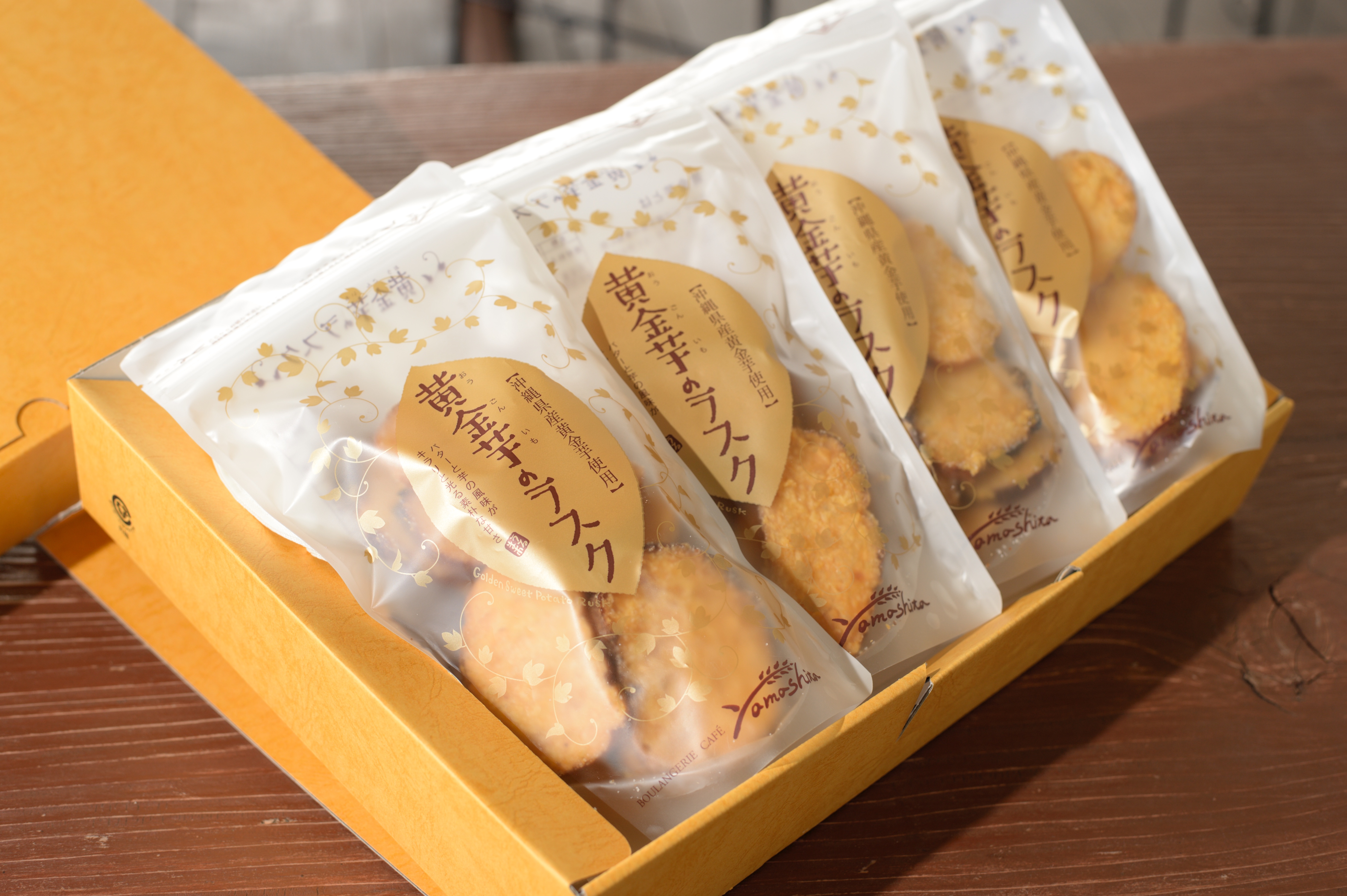 黄金芋のラスク 無添加・天然酵母の生地に地元の塩(ぬちまーす)を使用。素材にこだわった自慢のラスクです。 |
