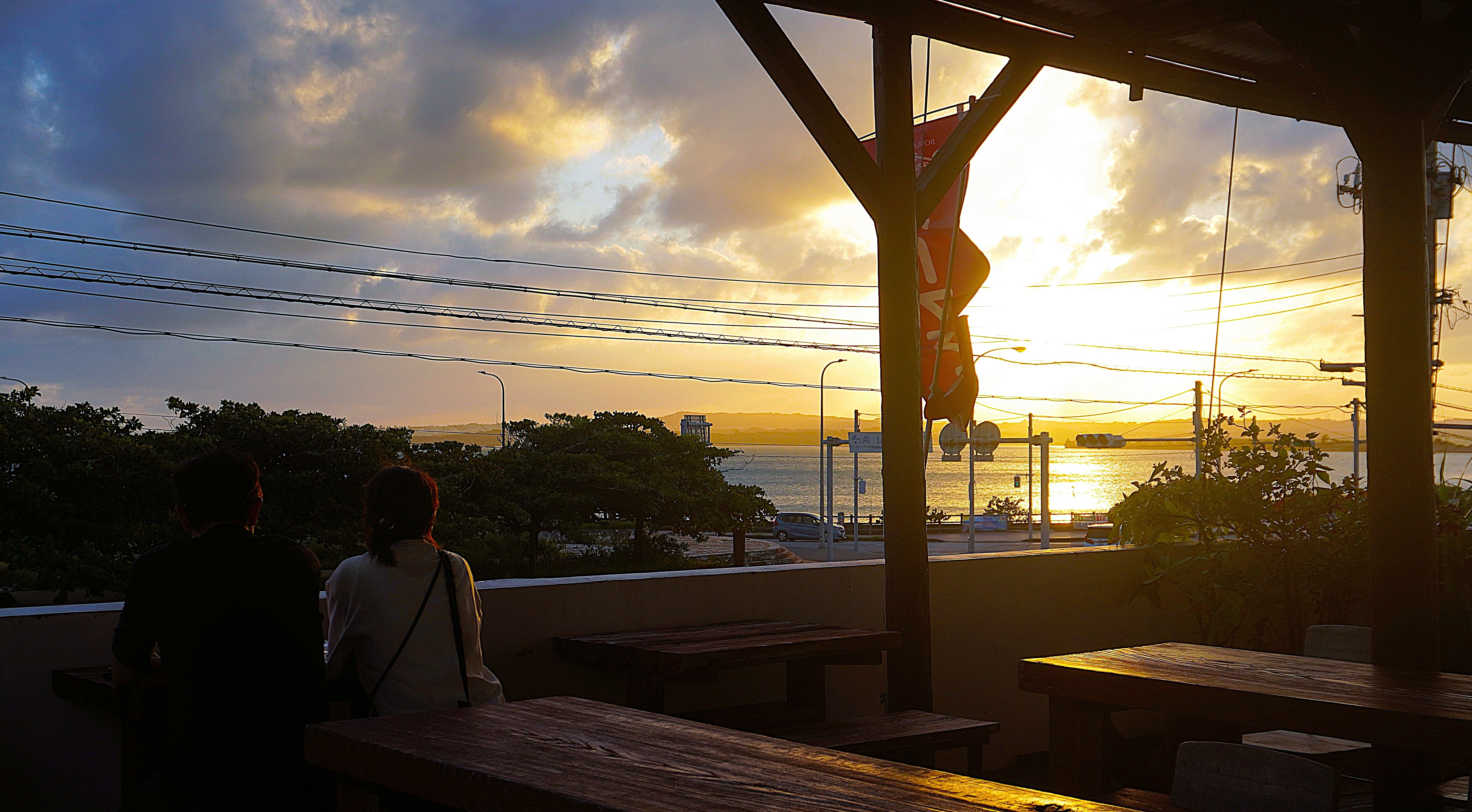 海とサンセットが見えるテラス席では店内で購入したパンやピザ、カレーをお召しあがりいただけます。 |